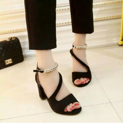 Sandal High Heels Hitam Cewek Wanita Kerja Pesta Hak via shopee.co.id
