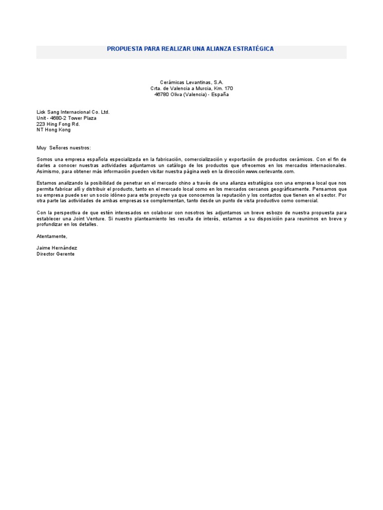 Ejemplo De Carta Propuesta Para Realizar Una Alianza via es.scribd.com